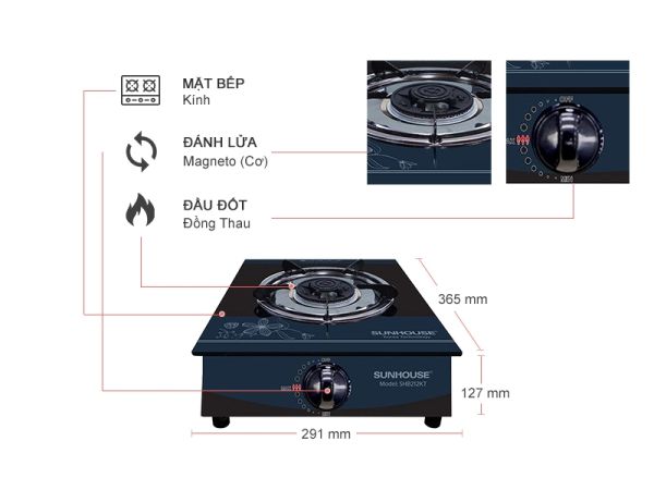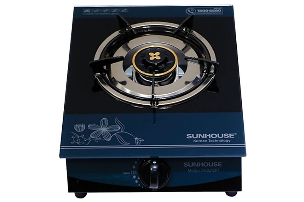 Bếp gas đơn SUNHOUSE SHB212KT có 1 lò đun, điều khiển lửa to nhỏ bằng núm vặn tiện lợi. Mặt kính với gam màu đen & tô điểm họa tiết trang trí vừa mang lại tính thẩm mỹ cao vừa có khả năng chịu lực, chịu nhiệt, đồng thời dễ dàng vệ sinh sau khi sử dụng.
