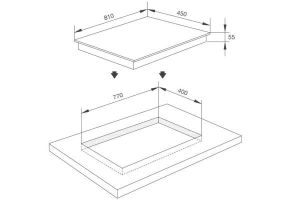 - Mặt kính Eurokera - màu đen, chịu lực và chịu sốc nhiệt cao, chống trầy xước