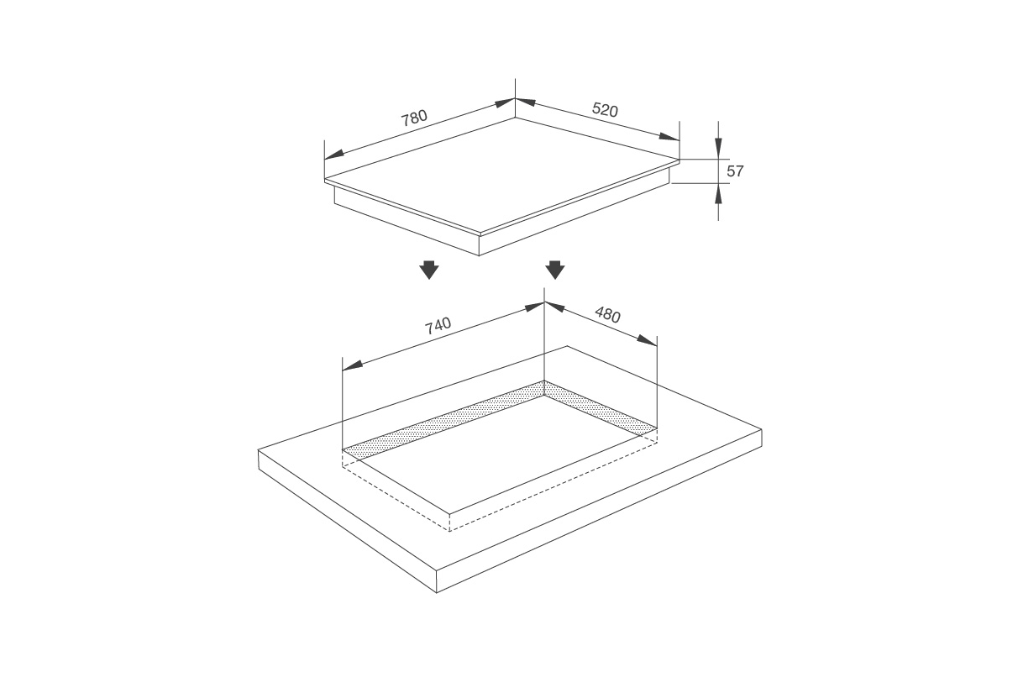 Kích thước bếp | W780 x D520 x H57 mm |