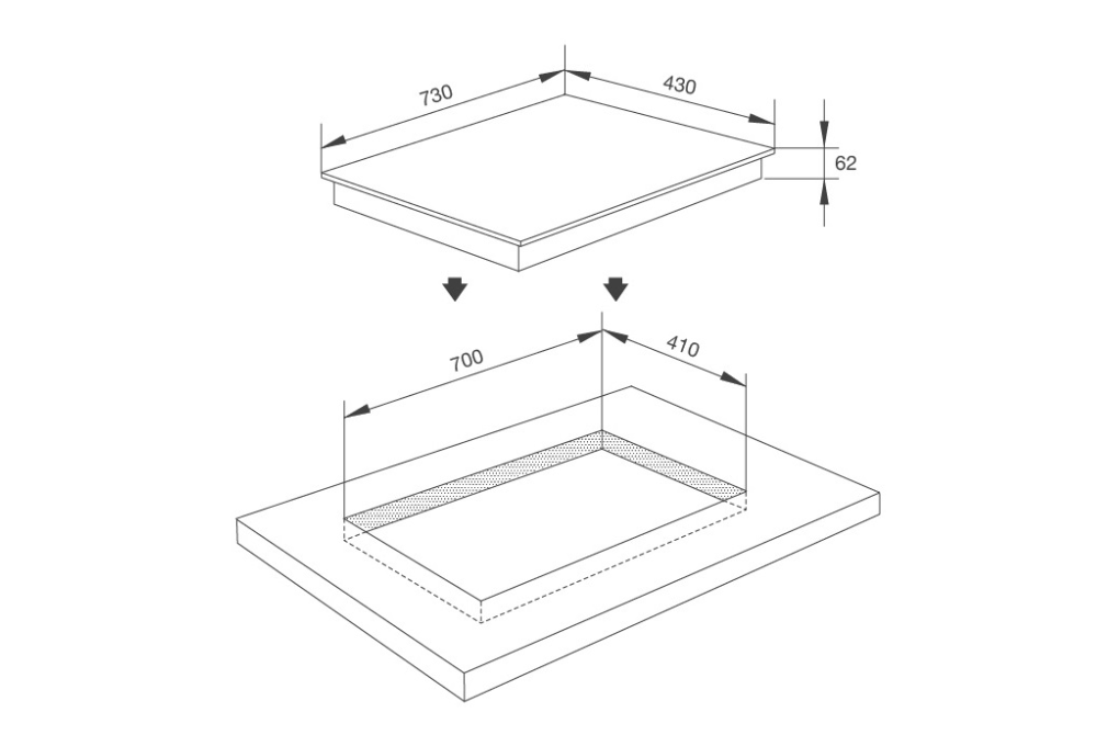 | Kích thước bếp | W730 x D430 x H62 mm |