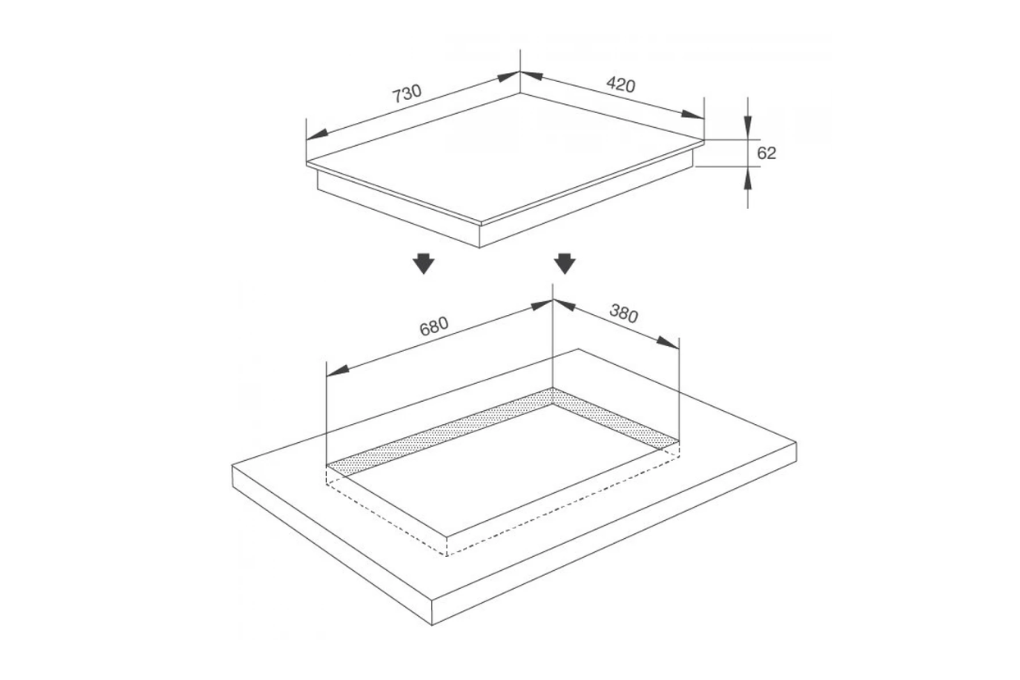 | Kích thước bếp | W730 x D420 x H62 mm |