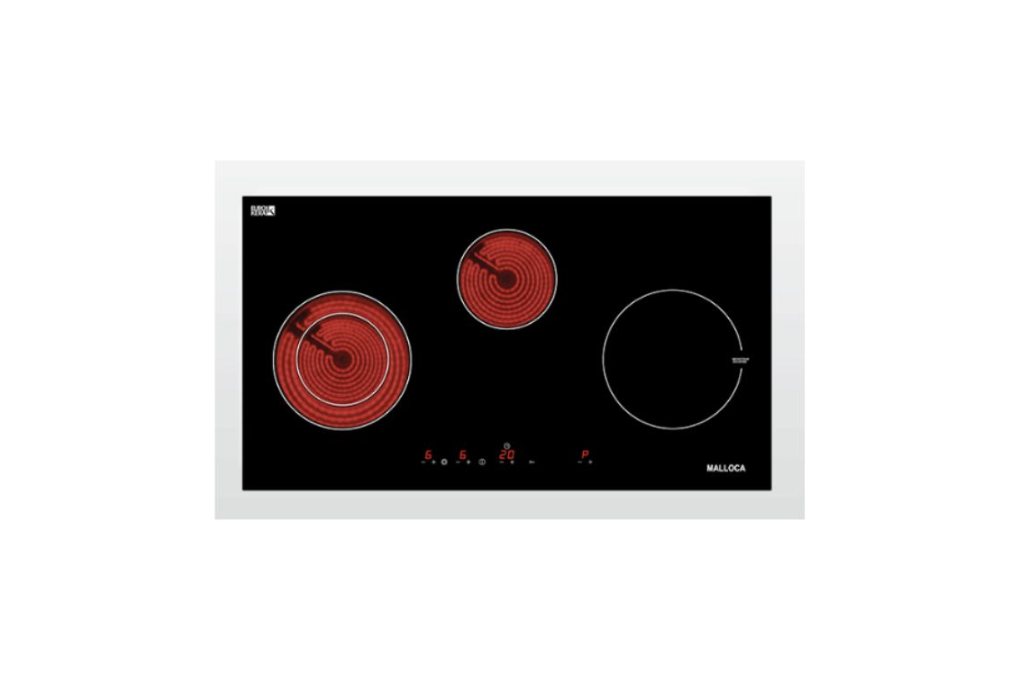 Bếp điện từ malloca 3 bếp MH-03IRA với kích thước W810 x D450 x H55mm, được thiết kế để âm bếp, mang lại không gian bếp gọn gàng, hiện đại và tối ưu hóa không gian. Bếp điện từ này bao gồm hai vùng nấu điện và một vùng nấu từ, đáp ứng nhu cầu đa dạng của người dùng.