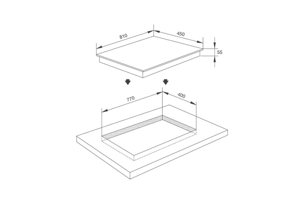 | Kích Thước Bếp | W810 x D450 x H55mm |