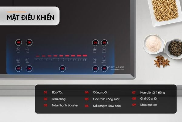 Công nghệ Inverter giúp bếp duy trì công suất ổn định, giảm tiêu thụ điện năng, giảm tiếng ồn và tránh tình trạng nhiệt độ thay đổi đột ngột. Điều này không chỉ giúp tiết kiệm chi phí điện mà còn giữ cho không gian bếp yên tĩnh, mang lại cảm giác thoải mái cho người sử dụng và đảm bảo độ bền lâu dài của bếp.ĐA CHỨC NĂNG – AN TOÀN VÀ THUẬN TIỆN
