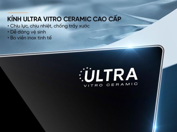 Bên cạnh đó là khả năng chịu lực cao, bạn có thể thoải mái sử dụng nồi nấu trên cả 2 vùng nấu cùng lúc mà không lo trọng lượng lớn từ xoong nồi làm hỏng mặt kính. Mặt kính Ceramic trên bếp từ này còn được hoàn thiện với độ nhẵn mịn cao, dễ dàng vệ sinh, lau chùi.