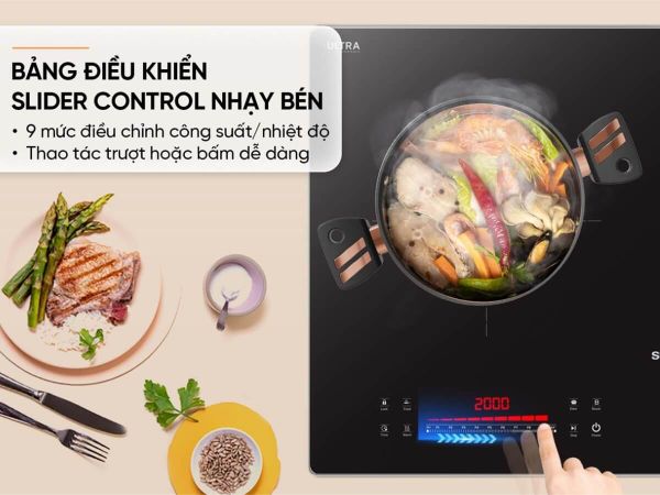 Bếp từ Sunhouse SHB555DI được trang bị hệ thống điều khiển cảm ứng trượt hiện đại, vừa tăng thẩm mỹ cho bếp, vừa tối ưu trải nghiệm người dùng.