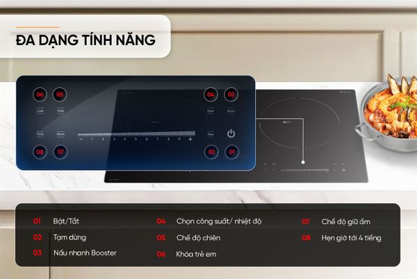 Công suất 4000W, có chức năng Booster nấu nhanh