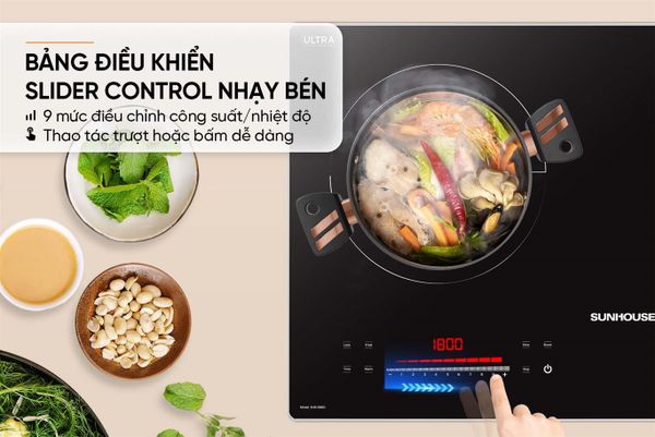 Bếp từ Sunhouse SHB588DI được trang bị hệ thống điều khiển cảm ứng trượt hiện đại, vừa tăng thẩm mỹ cho bếp, vừa tối ưu trải nghiệm người dùng.