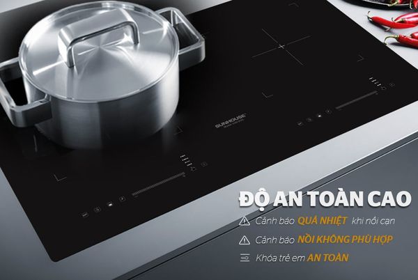 Bếp đôi điện từ SUNHOUSE SHB-DI05 được trang bị những tính năng an toàn như khóa trẻ em, tự động ngắt khi quá tải giúp bạn yên tâm sử dụng. Ngoài ra, sản phẩm còn được tích hợp tính năng hẹn giờ giúp bạn lựa chọn thời gian nấu phù hợp với từng món ăn.