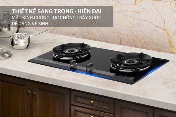 Bếp gas Sunhouse SHB61020-V sở hữu thiết kế sang trọng với mặt kính đen nhẵn bóng, dễ vệ sinh, đặc biệt là được lắp âm tạo không gian gọn gàng, tiện nghi. 2 lò nấu được trang bị đầu đốt bằng đồng bền chắc, chịu nhiệt tốt. Kiềng bếp được tích hợp vòng chắn gió giúp đun nấu ổn định và tiết kiệm gas.