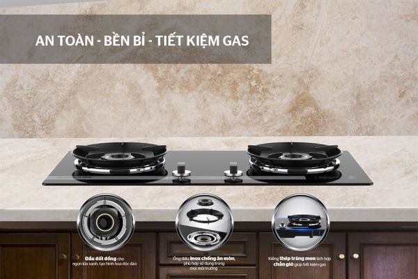 Bếp được trang bị 2 lò nấu cho phép nấu 2 món cùng lúc vô cùng tiện lợi và tiết kiệm thời gian. Lượng gas tiêu thụ 220g/h/lò, bạn có thể thoải mái nấu nướng mà không lo tốn nhiều lượng gas tiêu thụ.