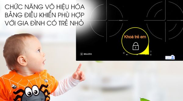 Chức năng khóa phím an toàn: Bảo vệ trẻ nhỏ khỏi việc vô tình chạm vào bảng điều khiển khi bếp đang hoạt động.