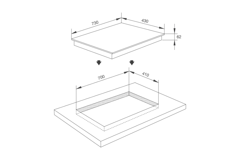 Vùng nấu Ø200: 1.8kW + 1.0kW / Booster 2.2kW (Ø138/Ø230)