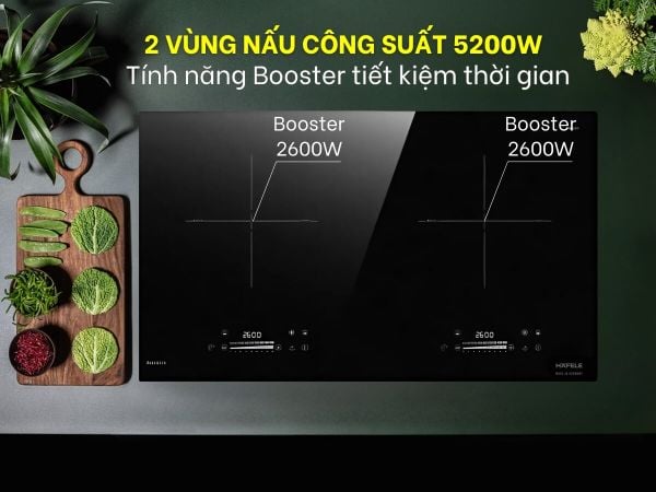 Công suất bếp lớn và chức năng gia nhiệt nhanh (booster) giúp tăng công suất nấu lên đến 1,7 lần.
