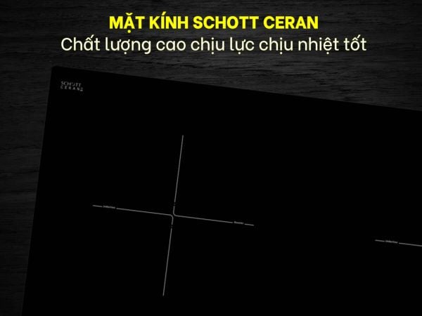 - Khả năng dẫn nhiệt của kính Schott Ceran rất thấp nên ngoại trừ vùng nấu đang sử dụng, bề mặt xung quanh vẫn nguội và an toàn khi chạm vào trong quá trình nấu