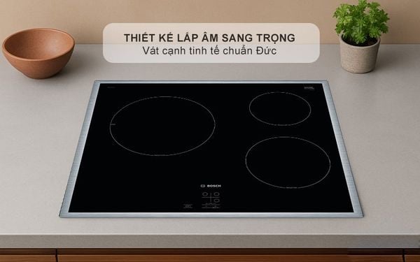Bếp từ Bosch PUC64RAA5E được thiết kế lắp âm tinh tế, giúp tạo không gian bếp gọn gàng, tiện nghi và hài hòa với phong cách hiện đại. Mặt kính đen nguyên khối sáng bóng, mịn màng, dễ lau chùi và tăng tính thẩm mỹ cho căn bếp. Khung viền thép không gỉ vừa chắc chắn vừa chống va đập, đảm bảo bảo vệ bếp tối ưu trong quá trình sử dụng. Đây là lựa chọn hoàn hảo cho những căn bếp sang trọng, vừa đẹp vừa bền.