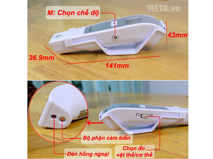 - Đa năng: Bạn chỉ cần giữ máy ở khoảng cách 3 - 5 cm là có thể dễ dàng kiểm tra nhiệt độ cơ thể, vật thể, nước, sữa...