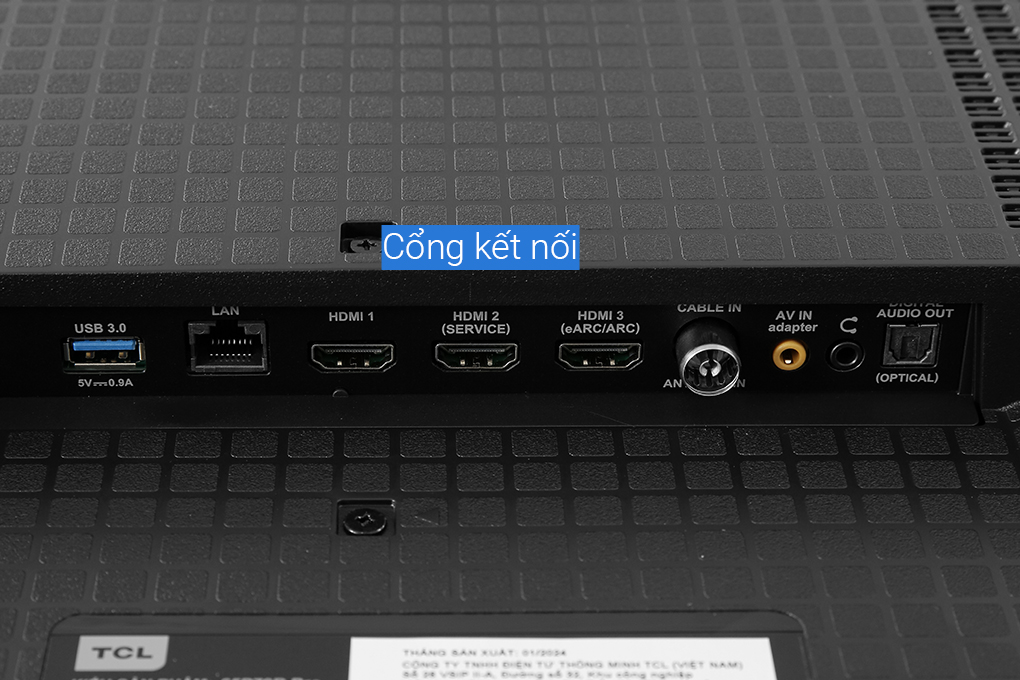 Cổng nhận hình ảnh, âm thanh:3 cổng HDMI có 1 cổng HDMI eARC (ARC), 1 cổng Composite