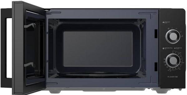 Lò vi sóng Sharp R-2348V-BK sở hữu kiểu dáng nhỏ gọn, màu đen tinh tế phù hợp với mọi không gian bếp. Kích thước lò là 48.2cm (rộng) x 27.3cm (cao) x 38cm (sâu) giúp tiết kiệm không gian, phù hợp với căn bếp nhỏ. Cửa lò có tay cầm chắc chắn, giúp bạn mở cửa dễ dàng mà không gặp khó khăn.