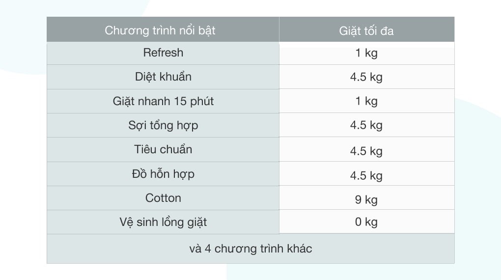 Trong đó, chương trình giặt diệt khuẩn sẽ giúp cho các loại quần áo như khăn tắm, khăn lau mặt, quần áo trẻ em,… được giặt sạch sâu, đánh bay vi khuẩn, an toàn cho người dùng.