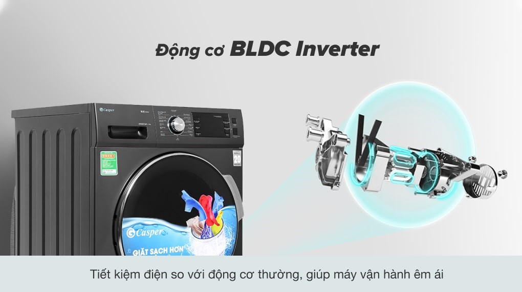 Máy giặt Casper Inverter sử dụng động cơ BLDC từ nam châm vĩnh cửu, giúp giảm rung lắc, không gây tiếng ồn khó chịu & đặc biệt bền bỉ, chống hao mòn theo thời gian. Tối ưu hiệu quả vận hành của động cơ, tránh làm phiền bạn bởi tiếng ồn lớn.