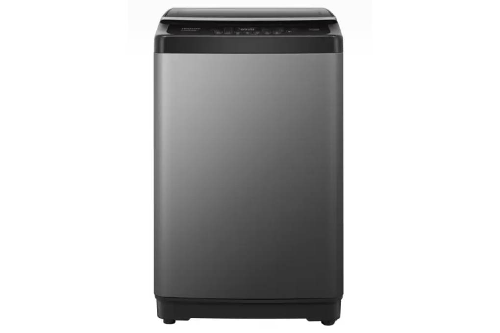 - Máy giặt có kiểu dáng cửa trên - lồng đứng, lắp đặt dễ dàng với các nội thất trong gia đình với tone màu xám.