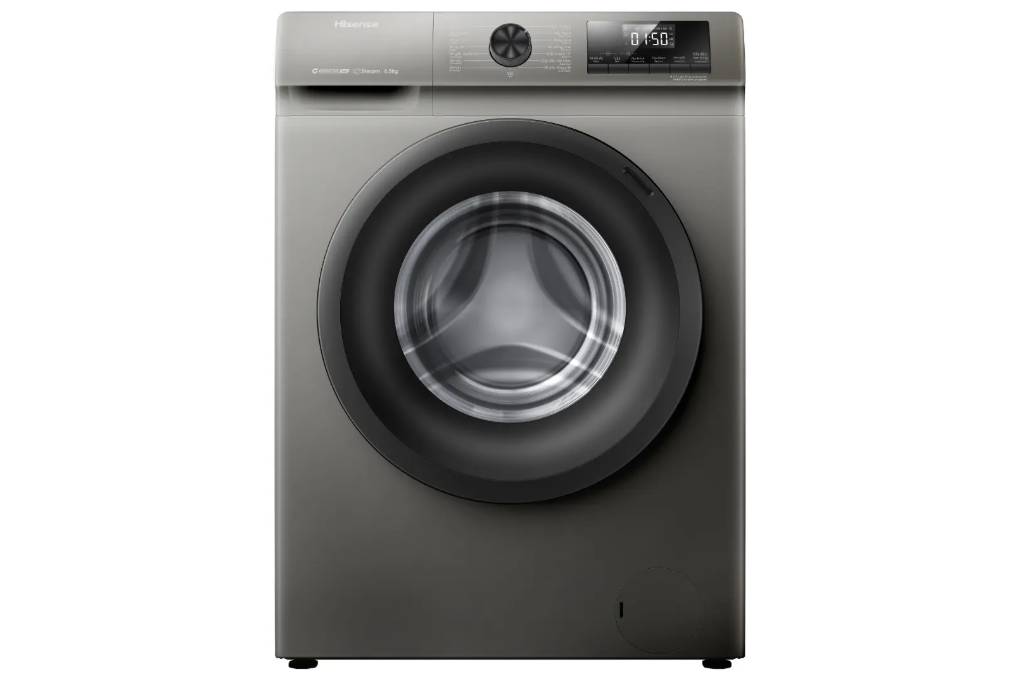- Máy giặt Hisense cửa trước - lồng ngang với màu xám titan, phù hợp với nhiều không gian nội thất trong nhà bạn.