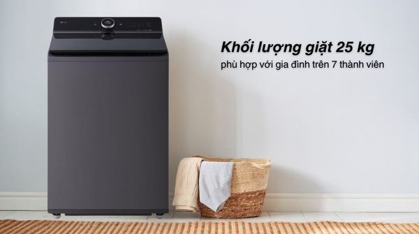 - Với khối lượng giặt lên đến 25 kg, máy thích hợp cho gia đình trên 7 người hoặc người dùng cần giặt chăn ga, rèm, đồ số lượng lớn mỗi lần.