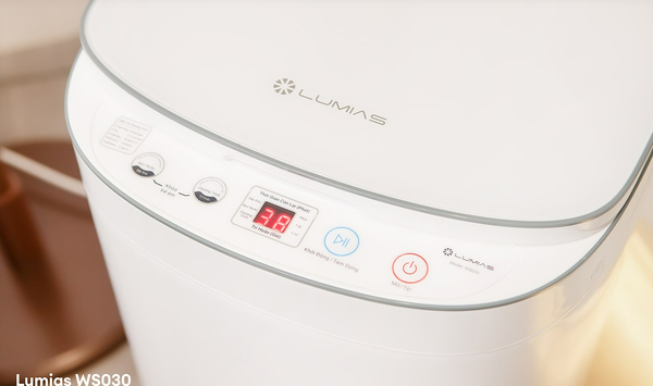 Máy giặt mini Lumias WS030 là lựa chọn lý tưởng cho người sống một mình, gia đình có trẻ nhỏ hoặc cần giặt riêng đồ cá nhân. Sở hữu thiết kế nhỏ gọn hiện đại cùng dung tích 7L, công nghệ giặt nóng và khử trùng nhiệt độ cao, WS030 mang đến trải nghiệm giặt giũ sạch sâu, an toàn và tiết kiệm không gian tối đa.