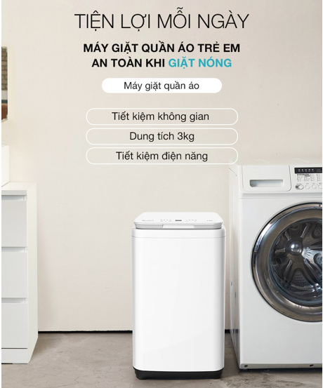 Khối lượng giặt 3.0kg, đáp ứng nhu cầu giặt riêng cho mẹ và bé