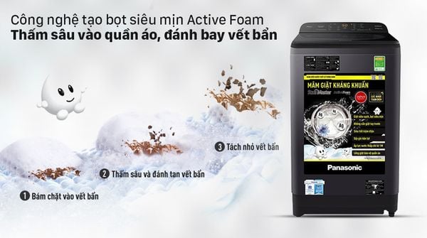 Công nghệ Active Foam có khả năng hòa tan chất giặt tẩy và tạo thành hàng triệu bọt khí li ti, giúp thẩm thấu sâu vào từng sợi vải giúp đánh bật các vết bẩn hiệu quả và tránh tình trạng cặn bột giặt thừa bám trên quần áo sau khi giặt.