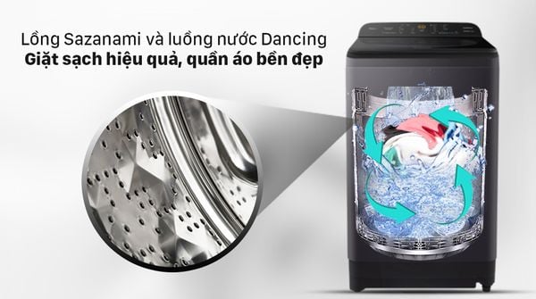 Lồng giặt Sazanami kết hợp với luồng nước Dancing Water Flow giúp giặt sạch hiệu quả, bảo vệ quần áo bền đẹp