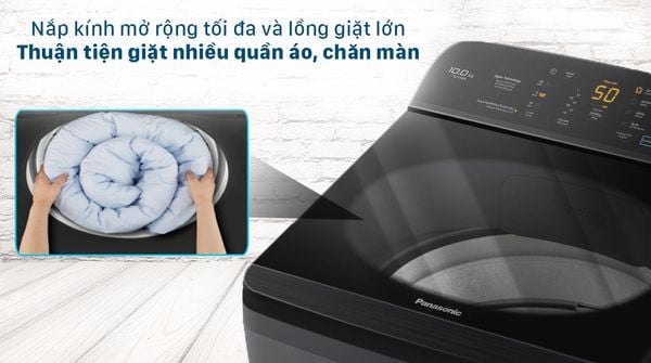 Thiết kế mới với nắp máy có thể mở rộng tối đa kết hợp với kích thước lồng giặt lớn thuận tiện cho vào hoặc lấy quần áo ra khỏi máy, ngay cả với những đồ có kích thước lớn như chăn, gối,... Từ đó, quá trình giặt giũ trở nên tiện lợi và dễ dàng hơn rất nhiều.