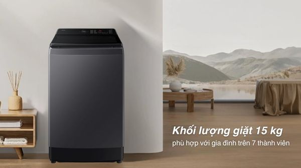 - Với khối lượng giặt 15 kg, máy phục vụ tốt cho gia đình trên 7 người hoặc nhu cầu giặt nhiều đồ mỗi lần như chăn, drap, áo khoác, quần áo dày,...