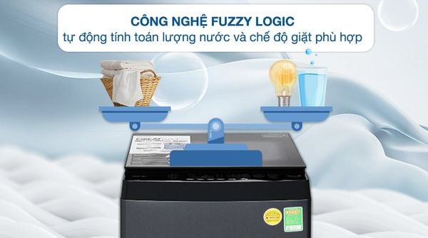 - Công nghệ suy luận ảo Fuzzy Logic: xác định khối lượng của quần áo một cách tự động, sau đó tính toán lượng nước, thời gian giặt phù hợp giúp đảm bảo quần áo được giặt tối ưu đồng thời giúp tiết kiệm nước hiệu quả.