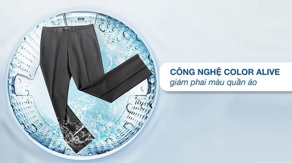 - Công nghệ Color Alive giúp hạn chế phai màu quần áo nhờ hệ thống giặt được thiết kế với khả năng giặt sạch tối ưu, bảo vệ áo quần giữ được độ bền màu tốt hơn.