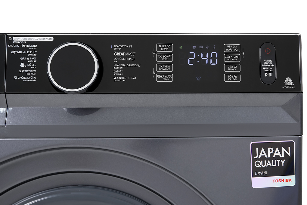 Máy giặt cửa trước Toshiba Inverter TW-BK115G4V(MG) được trang bị bảng điều khiển song ngữ Anh - Việt dạng cảm ứng kết hợp với núm xoay, có màn hình hiển thị LED để bạn dễ dàng thiết lập chương trình giặt, dễ dàng sử dụng ngay từ lần đầu tiên.