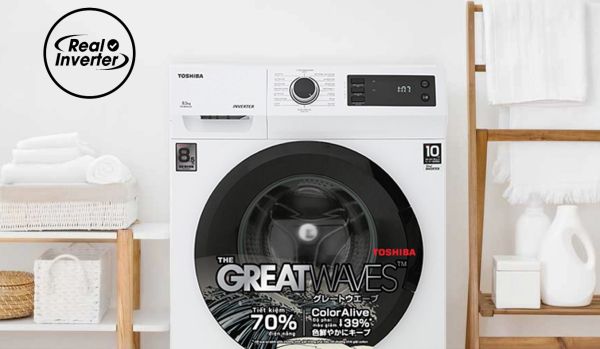 Máy giặt Toshiba Inverter 8.5 kg TW-BK95S2V(WK) trang bị công nghệ Real Inverter giúp tiết kiệm điện năng hiệu qủa nhưng vẫn đảm bảo hiệu quả giặt sạch tối ưu. Không chỉ vậy, Công nghệ này còn giúp máy giặt vận hành êm hơn, giảm rung ồn, tăng độ bền của sản phẩm. Nếu bạn đang lo lắng về vấn đề tiền điện mỗi tháng thì có thể yên tâm sử dụng chiếc máy giặt inverter này.
