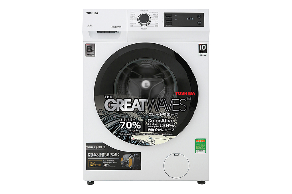 Máy giặt cửa trước Toshiba Inverter 8.5 kg TW-BK95S2V(WK) thuôc dòng máy giặt Inverter hiện đại với nhiều ưu điểm nổi bật như: tiết kiệm điện năng, vận hành êm ái, giảm phai màu quần áo và đánh bay vết bẩn mạnh mẽ. Với khối lượng 8.5 kg, chiếc máy giặt là sự lựa chọn thích hợp cho gia đình có khảng 3 -5 thành viên.