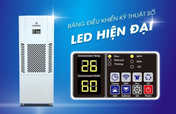 Máy hút ẩm công nghiệp Kosmen KM-180S là thiết bị chuyên dụng sở hữu công suất hút ẩm mạnh mẽ lên tới 180 lít/ngày, giúp kiểm soát độ ẩm tối ưu cho không gian rộng từ 200 – 250m² như nhà hàng, phân xưởng, văn phòng, kho lưu trữ hay phòng sản xuất. Không chỉ nổi bật với hiệu suất cao, KM-180S còn được trang bị các tính năng thông minh như điều khiển từ xa qua app, hẹn giờ bật/tắt, tự khởi động lại khi có điện và lưu lại lịch sử cài đặt — mang đến trải nghiệm sử dụng tiện nghi, hiện đại và tiết kiệm năng lượng.