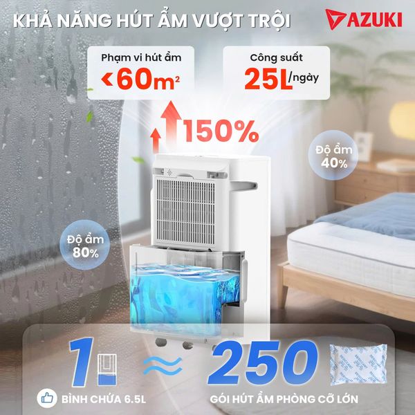 Khí hậu ẩm ướt, mưa nồm kéo dài, bụi mịn và vi khuẩn trong không khí ngày càng gia tăng, nhu cầu sở hữu máy hút ẩm và lọc không khí chất lượng cao trở nên vô cùng cần thiết. AZUKI GALAXY X4 – thiết bị 2 trong 1 vừa hút ẩm siêu mạnh, vừa lọc không khí bụi mịn PM2.5, là lựa chọn hàng đầu cho gia đình Việt muốn duy trì không gian sống khô thoáng – sạch sẽ – an toàn cho sức khỏe.
