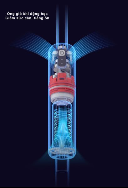 Ngoài ra, máy hút bụi Lydsto còn được tích hợp ống dẫn khí mới đã được tối ưu hóa cấu trúc, cho hiệu quả cao trong việc giảm sức cản và tiếng ồn của gió. Từ đó giúp máy có thể hút bụi với công suất mạnh trong thời gian dài một cách ổn định. Ngoài ra, cấu trúc ống dẫn khí mới còn đẩy luồng khí bên trong thổi ra các mặt xiên phía sau, tránh thổi bụi lên mặt và tay người dùng.
