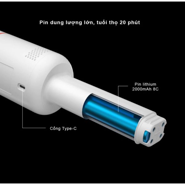 Về dung lượng pin, máy hút bụi cầm tay không dây Lydsto H3 được trang bị viên pin lithium đến 2000mAh. Chỉ trong 1 lần sạc khoảng 4 giờ thì viên pin có thể cho tuổi thọ đến 20 phút làm việc (tương đương 10 lần hút) mỗi ngày. Chính vì vậy, với chiếc máy hút bụi cầm tay này thì người dùng có thể linh hoạt sử dụng ở bất cứ đâu mà không lo vướng víu, bất tiện do dây nguồn.