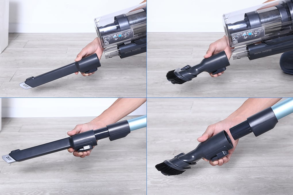 Máy hút bụi thiết kế chổi hút có khả năng xoay 180 độ nên dễ dàng tiếp cận ở mọi ngóc ngách. Đầu chổi dễ tháo rời bằng 1 nút bấm để vệ sinh và bảo quản sau khi sử dụng xong.