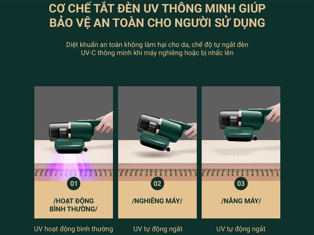 Chỉ cần thao tác nghiêng máy là thiết bị sẽ tự động tắt đèn UV-C.