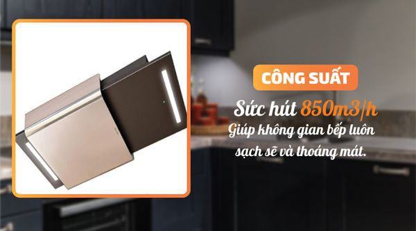 Sản phẩm sở hữu công suất hút lên đến 850m3/h, đảm bảo không khí trong không gian bếp luôn sạch sẽ và thoáng mát. Đặc biệt, máy hút mùi này hoạt động với độ ồn chỉ 58 dB, giúp bạn tận hưởng không gian yên tĩnh và thư giãn ngay cả khi đang nấu nướng.