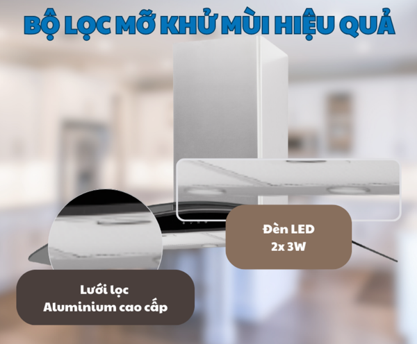 Lưới lọc của máy được làm từ hợp kim nhôm, không chỉ bền bỉ với thời gian mà còn dễ dàng tháo rời và vệ sinh, giúp duy trì hiệu suất lọc tối ưu. Đèn Halogen 2 x 20 W cung cấp ánh sáng mạnh mẽ và rõ ràng, giúp bạn dễ dàng quan sát trong quá trình nấu ăn.