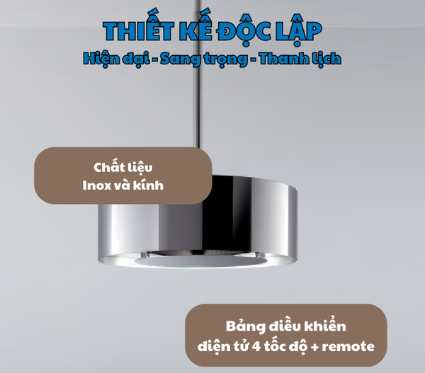 Máy được trang bị điều khiển điện tử hiện đại với 4 tốc độ hút khác nhau, cho phép bạn dễ dàng điều chỉnh phù hợp với từng món ăn và mức độ mùi. Thêm vào đó, remote điều khiển đi kèm giúp bạn thao tác từ xa một cách thuận tiện.