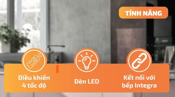 Malloca Ellitto được trang bị bảng điều khiển remote với 4 tốc độ, giúp bạn dễ dàng điều chỉnh theo nhu cầu sử dụng. Hơn nữa, sản phẩm còn có hệ thống điều khiển kết nối với bếp Integra, giúp bạn kiểm soát hoạt động của máy hút mùi một cách linh hoạt và tiện lợi. Đèn chiếu sáng trên máy hút mùi giúp bạn dễ dàng theo dõi quá trình nấu nướng và tạo không gian ấm cúng cho gia đình.