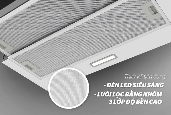 Máy hút mùi Sunhouse SHB6128 trang bị hệ thống lưới lọc mỡ bao gồm 2 tấm lưới lọc, chất liệu nhôm cao cấp, cấu tạo 3 lớp giúp ngăn tối đa dầu mỡ bám sâu vào bên trong máy. Lưới lọc cũng được thiết kế dễ dàng tháo lắp giúp bạn dễ dàng tháo ra để vệ sinh, làm sạch. Máy hút mùi than hoạt tính hoạt động dựa trên cơ chế quay vòng tuần hoàn. Cụ thể là toàn bộ khói, mùi thức ăn được hút vào trong khoang máy đi qua bộ lọc than rồi trả lại nhà bếp không khí đã được làm sạch. Quá trình này được thực hiện bởi động cơ nằm phía sau bộ lọc. Trước đó, một số bụi bẩn và cặn dầu mỡ đã được ngăn lại ở vỉ lưới lọc mỡ bên ngoài khoang máy nên không khí trả lại cho không gian bếp rất trong sạch.